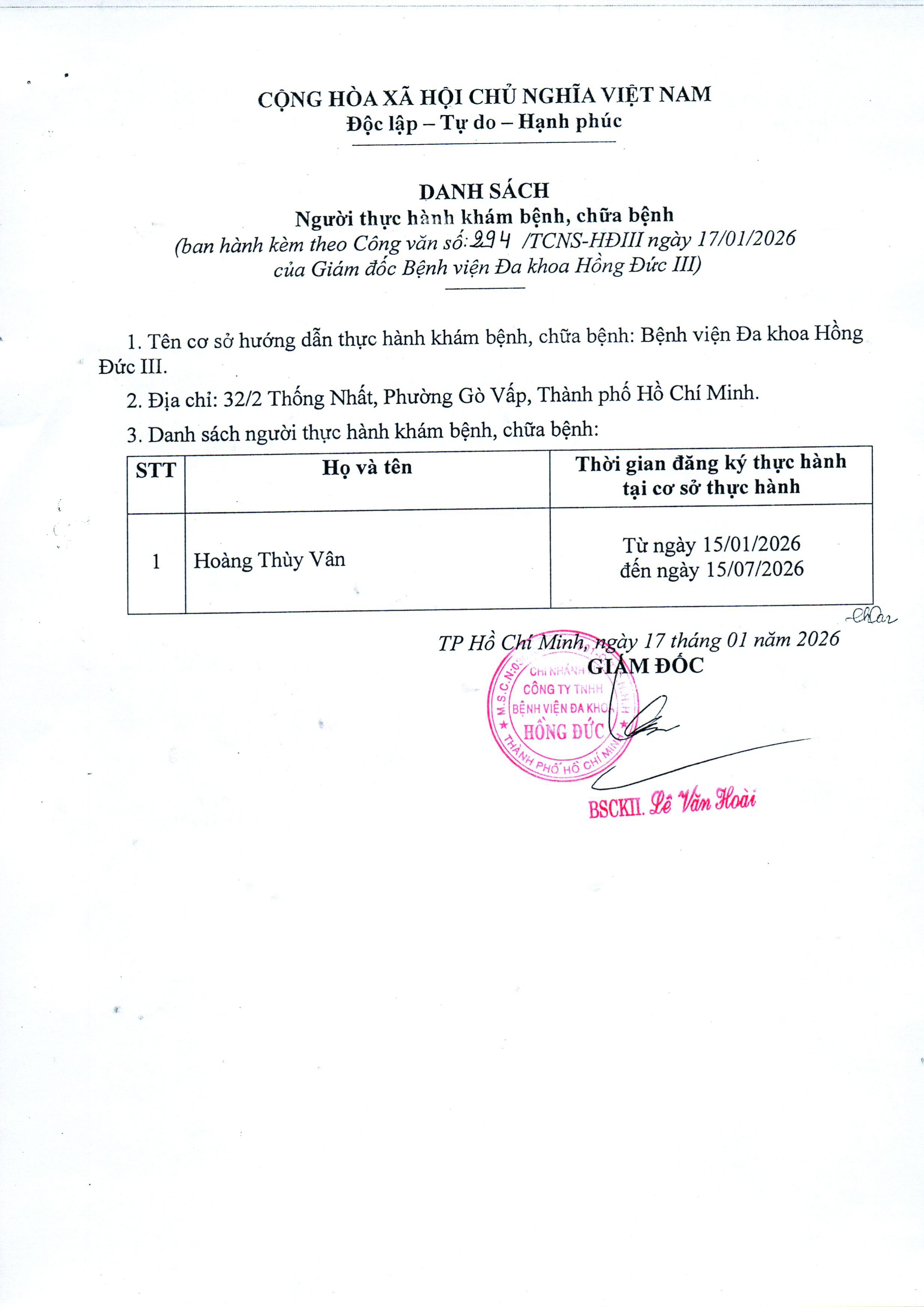 DANH SÁCH ĐĂNG KÝ THỰC HÀNH 15.01.2026