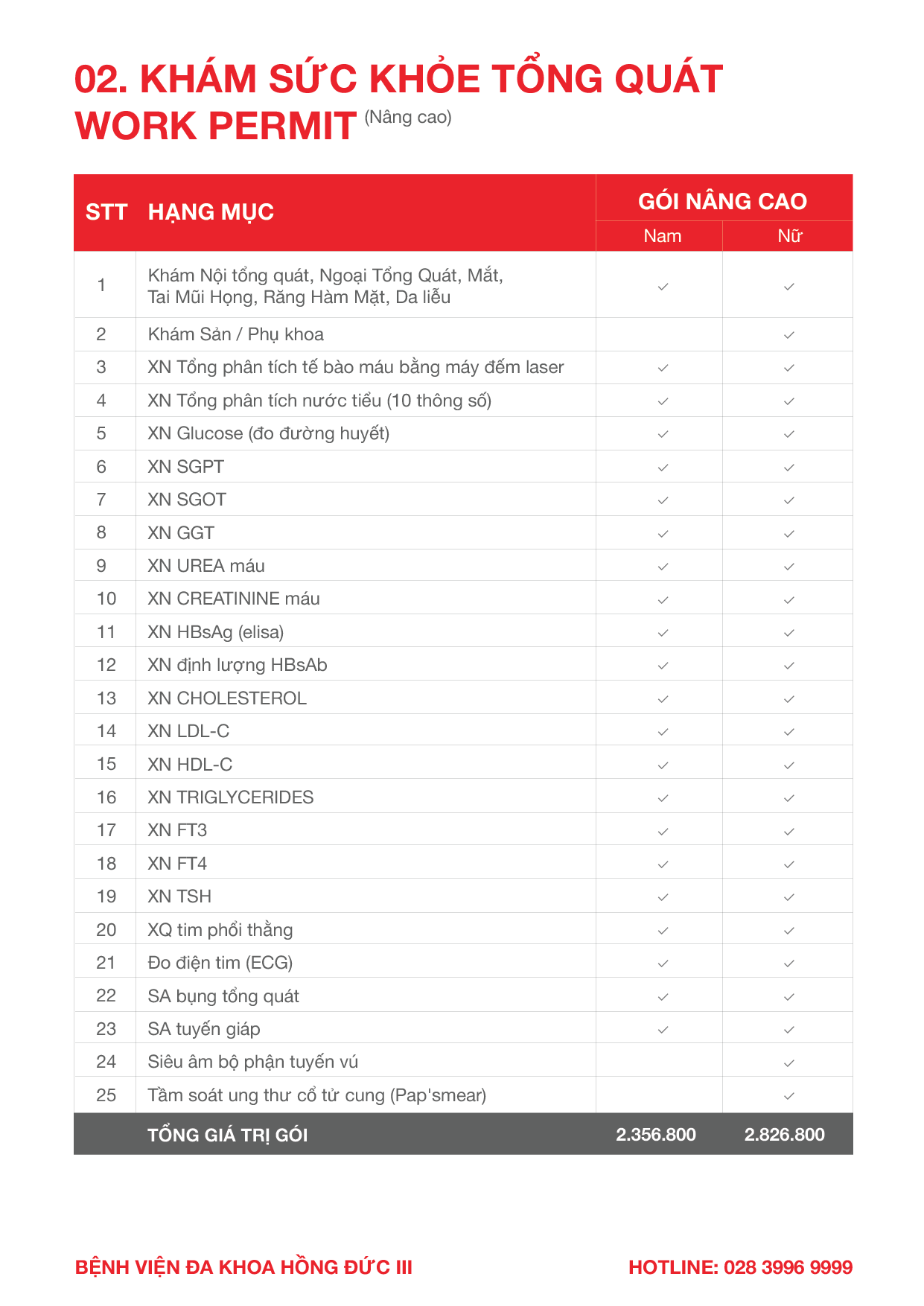 CHI TIẾT GÓI KHÁM TẠI ĐA KHOA HồNG ĐứC III