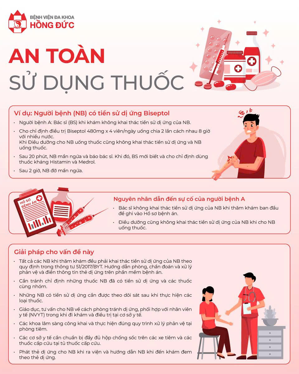 • Sàng lọc kỹ: 100% người bệnh được hỏi về tiền sử dị ứng ngay từ khâu tiếp nhận.