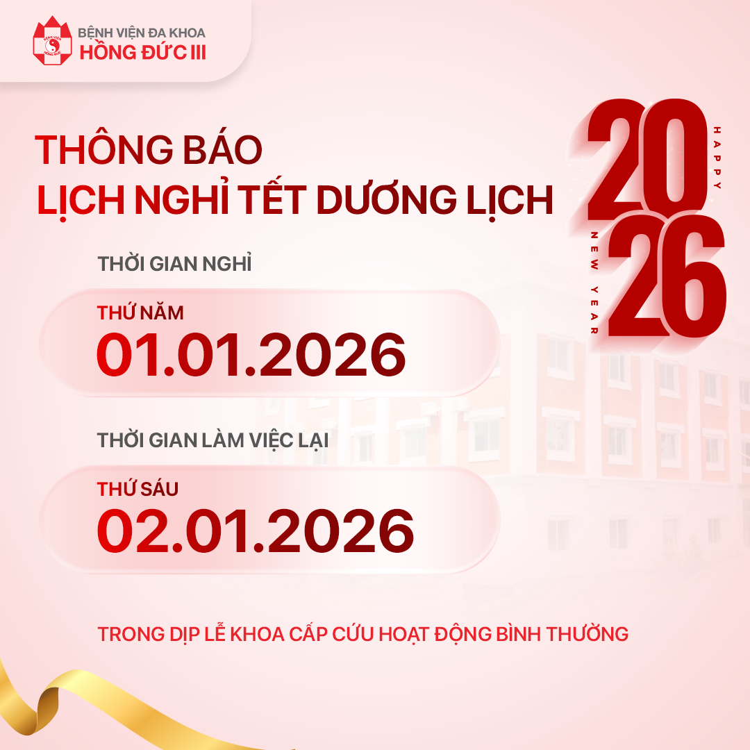BỆNH VIỆN ĐA KHOA HỒNG ĐỨC III TRÂN TRỌNG THÔNG BÁO LỊCH NGHỈ TẾT DƯƠNG LỊCH 2026