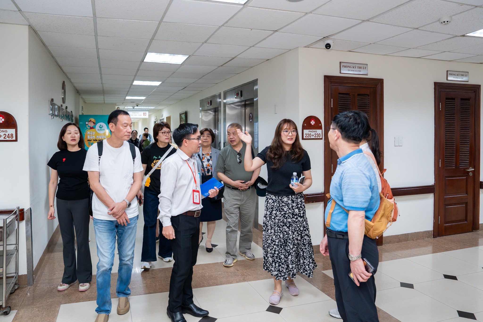 Đoàn bác sĩ của Hiệp hội đi tham quan cơ sở vật chất của bệnh viện.