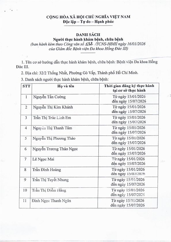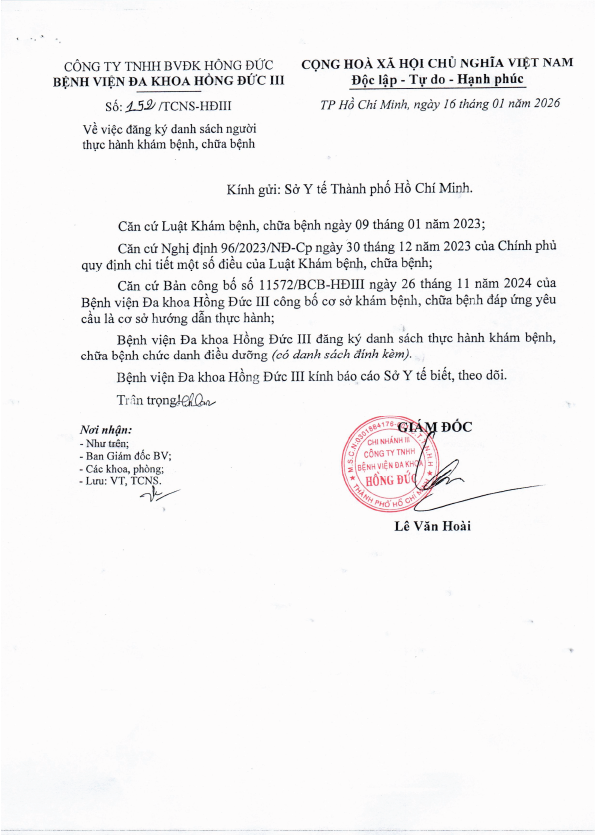 Căn cứ kế hoạch phát triển nhân sự năm 2026, Bệnh viện Đa khoa Hồng Đức III trân trọng thông báo tuy...