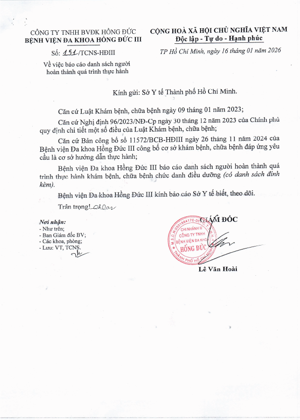 Căn cứ kế hoạch phát triển nhân sự năm 2026, Bệnh viện Đa khoa Hồng Đức III trân trọng thông báo tuy...