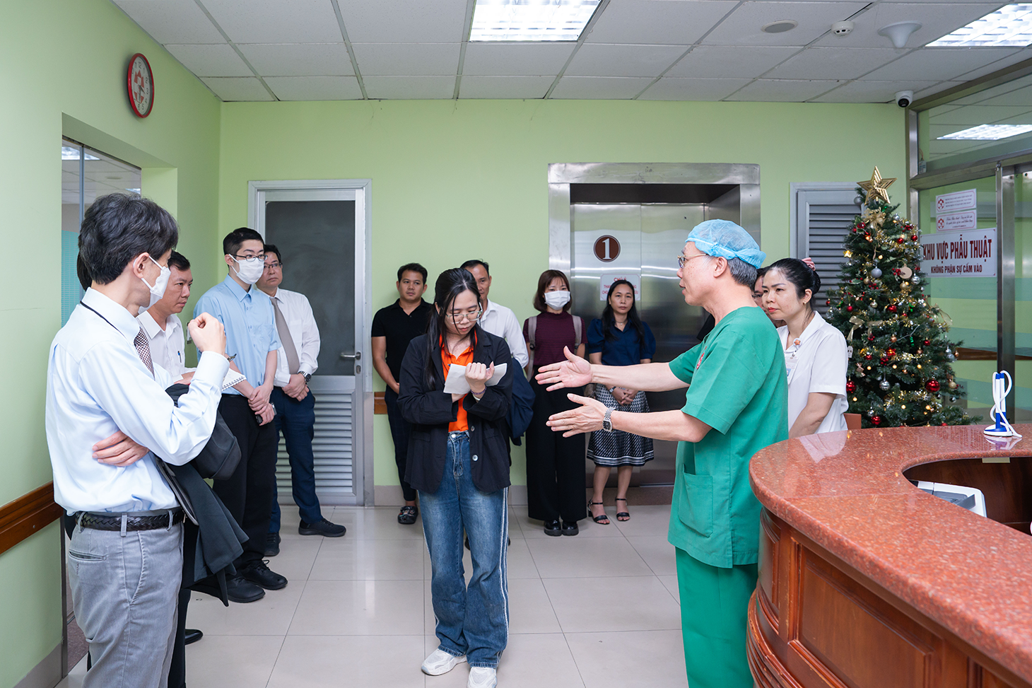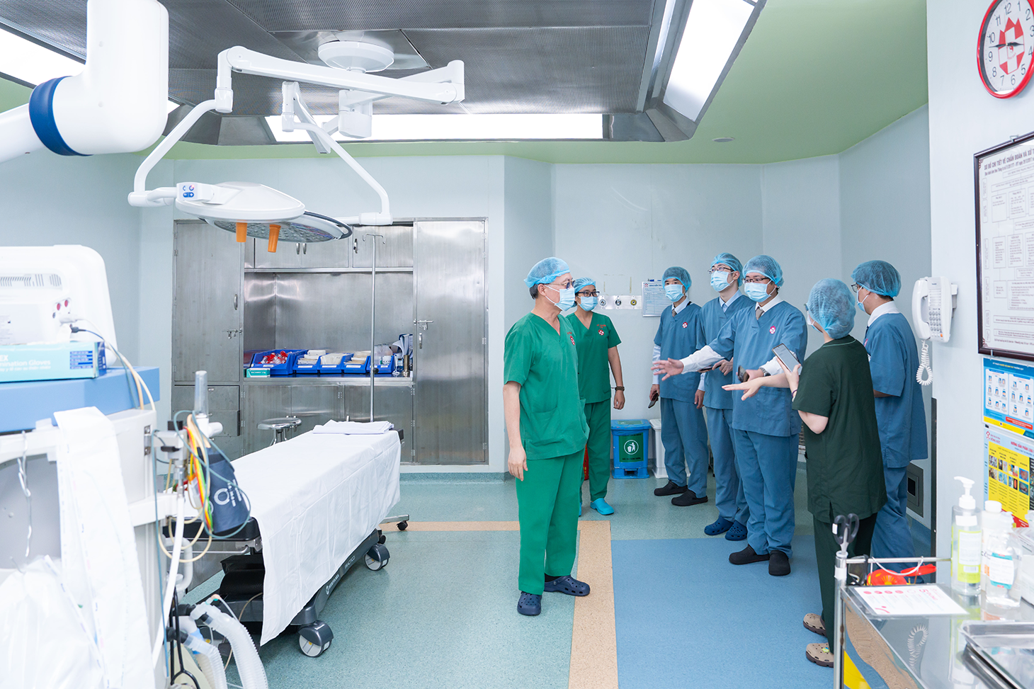 Đoàn tìm hiểu quy trình hoạt động phòng phẫu thuật của bệnh viện