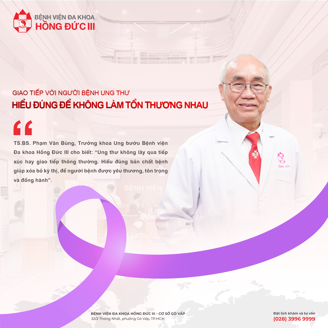 TS.BS. Phạm Văn Bùng, Trưởng khoa Ung bướu Bệnh viện Đa khoa Hồng Đức III cho biết: “Ung thư không lây qua tiếp xúc hay giao tiếp thông thường. Hiểu đúng bản chất bệnh giúp xóa bỏ kỳ thị, để người bệnh được yêu thương, tôn trọng và đồng hành”.
